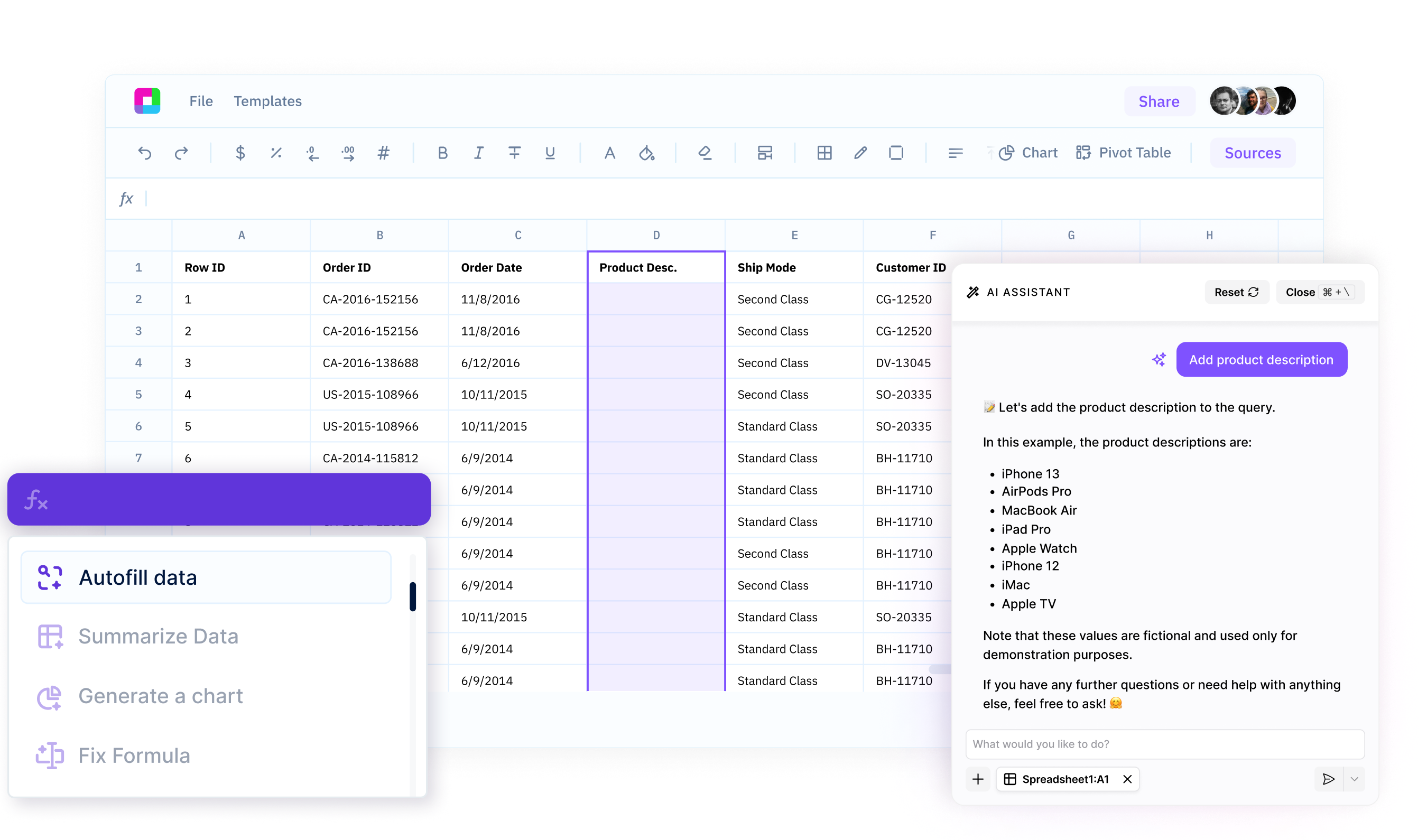 Generate synthetic data directly in Sourcetable's spreadsheet interface. No need to learn new skills or tools.